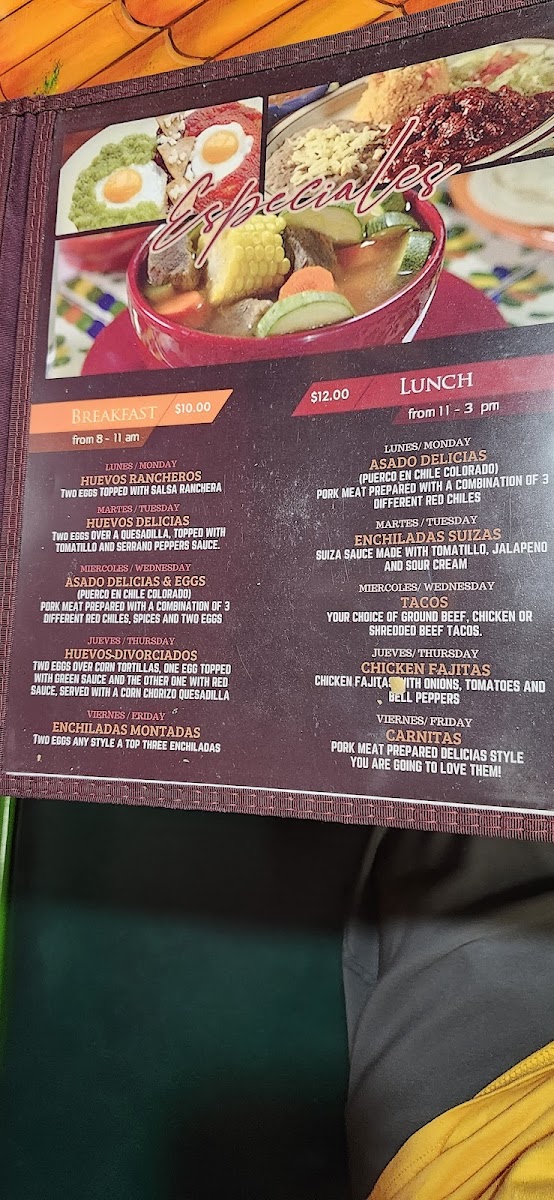 The menu offers a variety of traditional Mexican dishes, ranging from hearty soups and breakfast items to main courses featuring different types of meat and authentic sauces. It is organized into several key categories for ease of selection.
